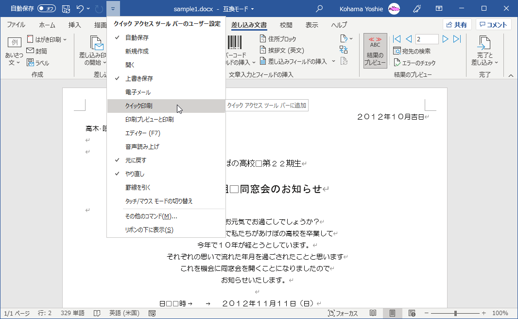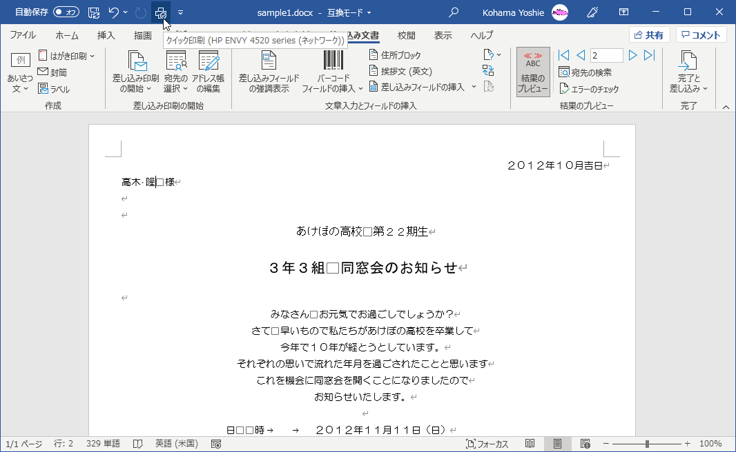 差し込み印刷を行う