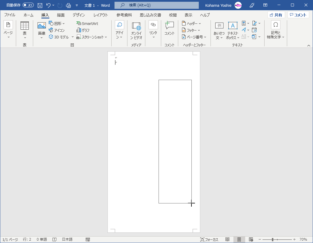 - [挿入]タブを開き、[テキストボックス]をクリックして[縦書きテキストボックスの描画]をクリックします。