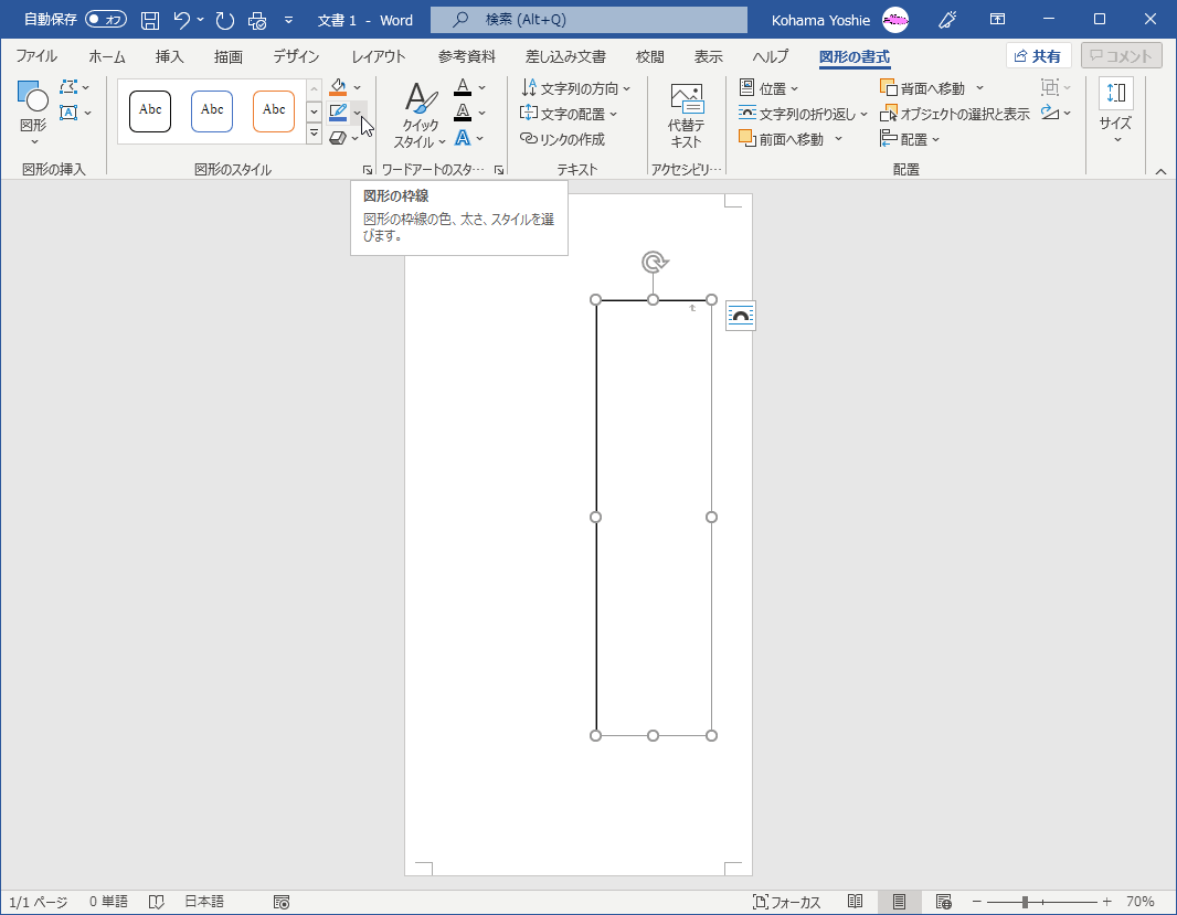 - テキストボックスを選択し、[図形の枠線]ボタンの▼をクリックします。