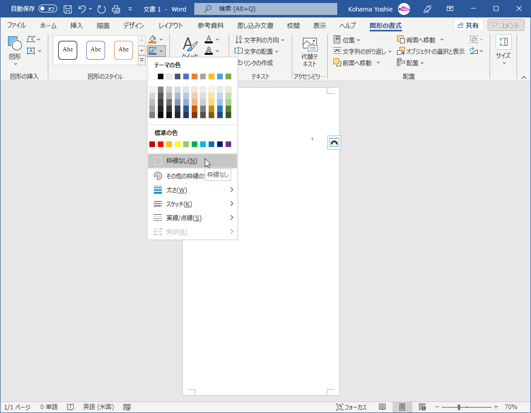 - 一覧から[線なし]を選択して、テキストボックスの枠線を削除します。