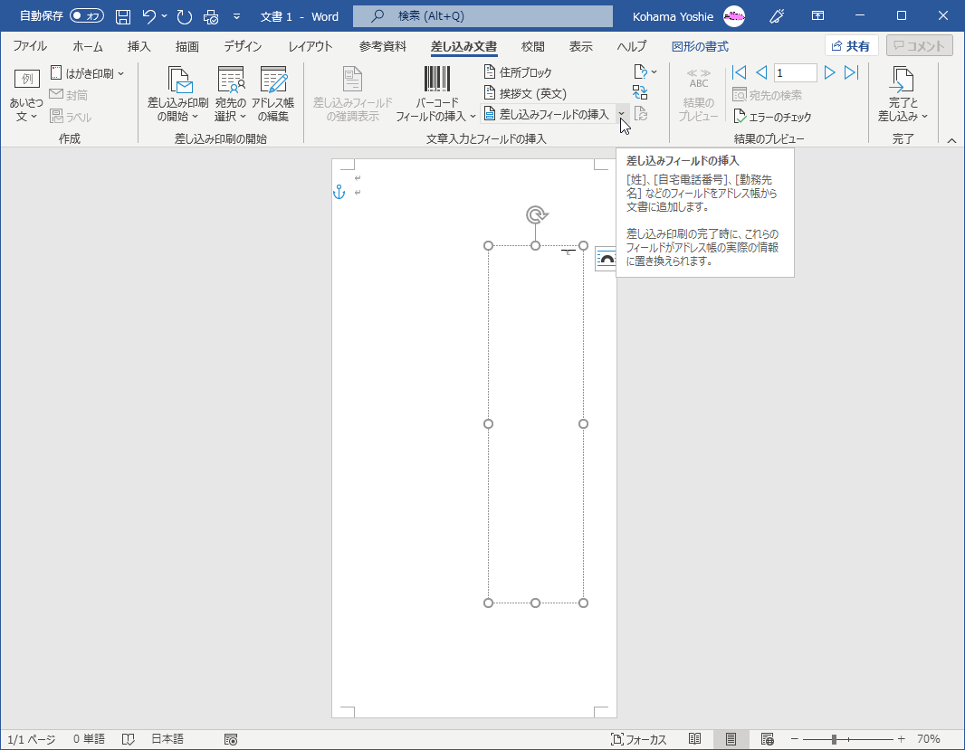 - 差し込みフィールドが挿入されました。