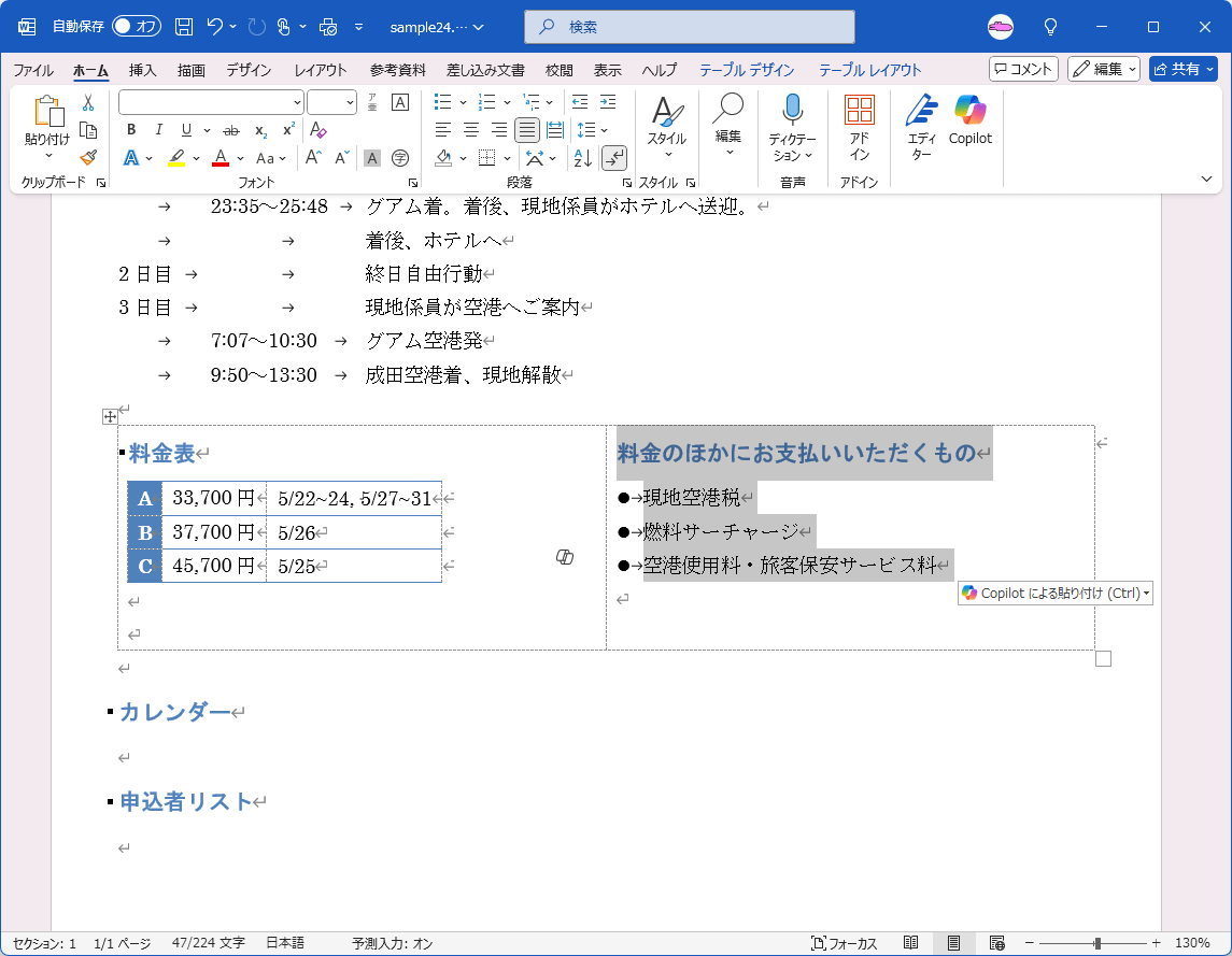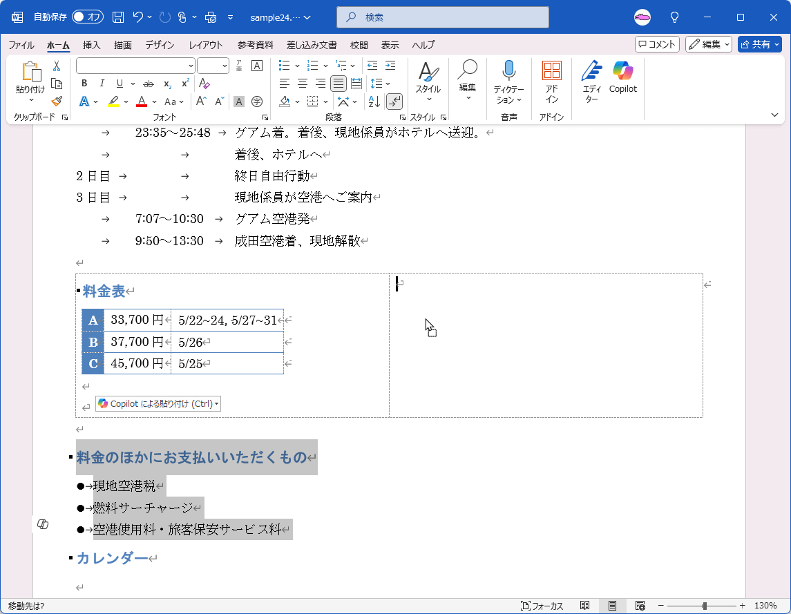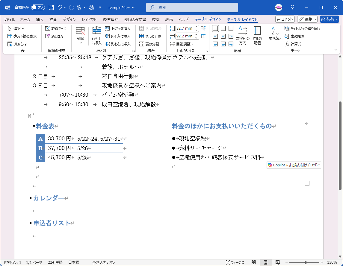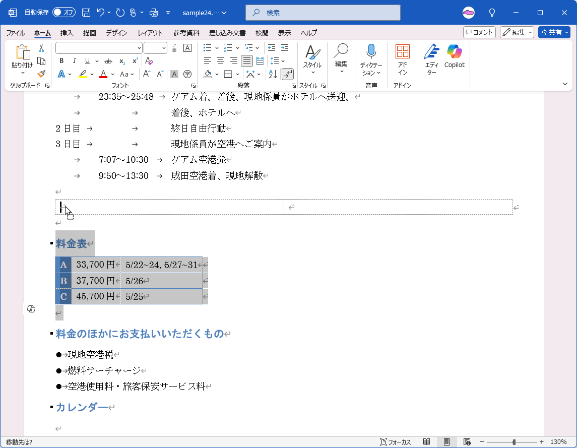 そこで、レイアウト用の表を挿入してそれぞれのセルにコンテンツを配置して、グリッド線を非表示にする方法について説明します。