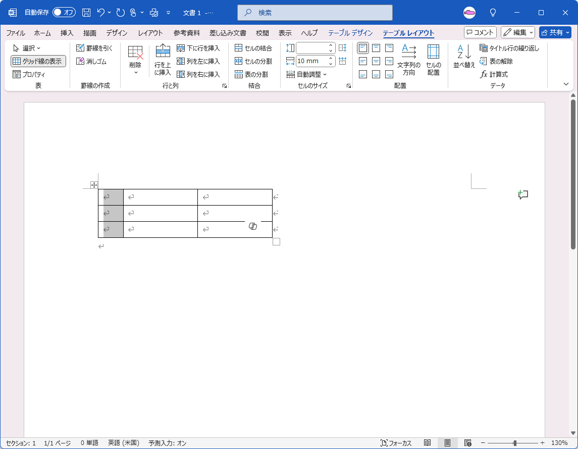 - 対象となる表の列を選択して[テーブル レイアウト]タブを開きます。