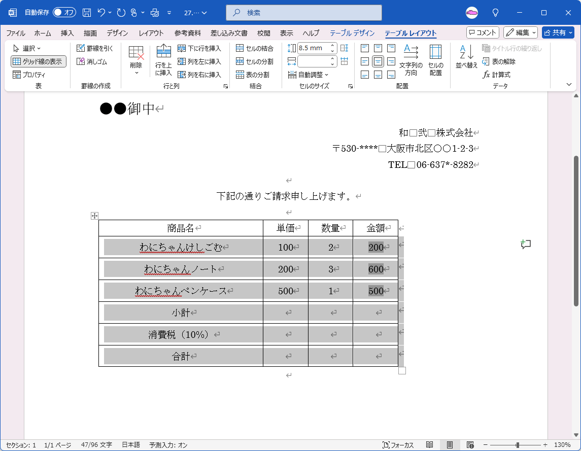 - [テーブル レイアウト]タブを開きます。