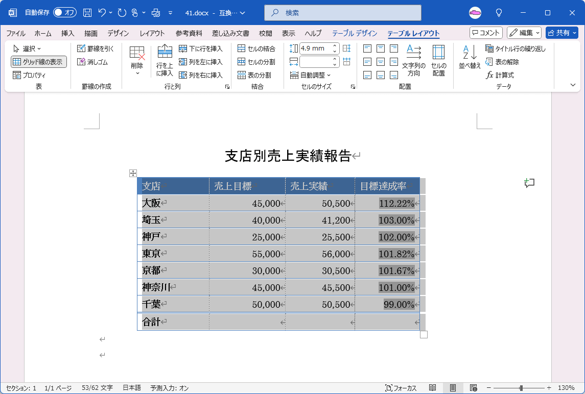 - [テーブル レイアウト]タブを開きます。