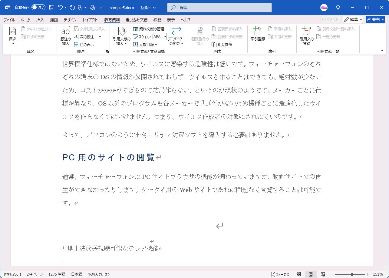 脚注の挿入