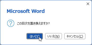 - [既存の目次を置き換えますか?]メッセージが表示されたら[OK]ボタンをクリックします。