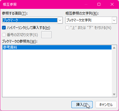 - [相互参照の文字列]には[ブックマーク文字列]が選択されていることを確認します。