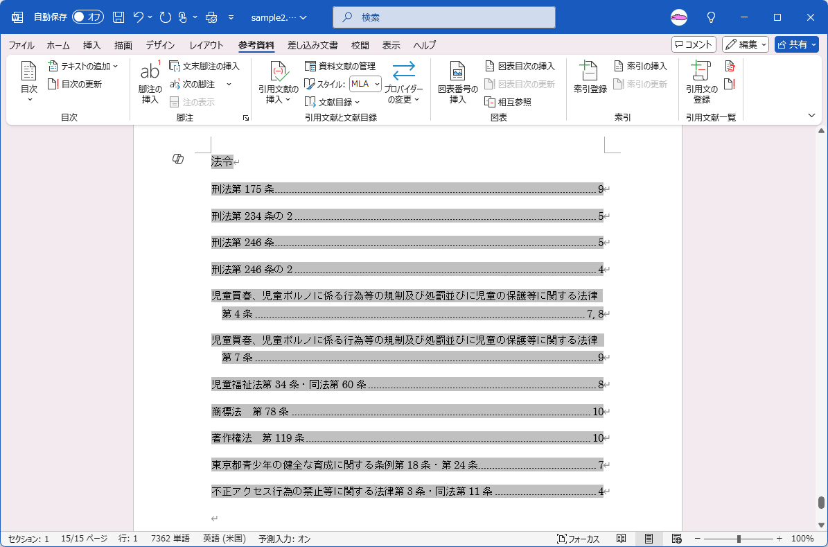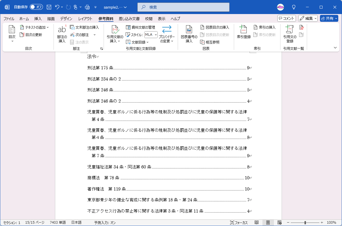 引用文献一覧を挿入した後、同じ項目なのに全角と半角の違いによって別々になってしまう場合があります。
