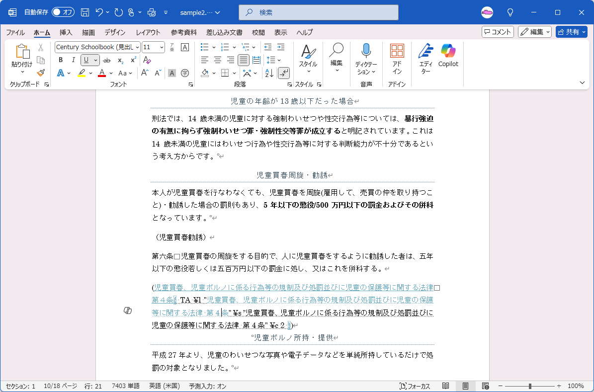 - 文書に正しいページ番号を付けるには、フィールドコードと隠し文字を非表示にする必要があります。 TA (引用文献登録)