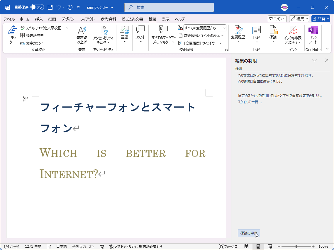 編集の制限の保護を中止する