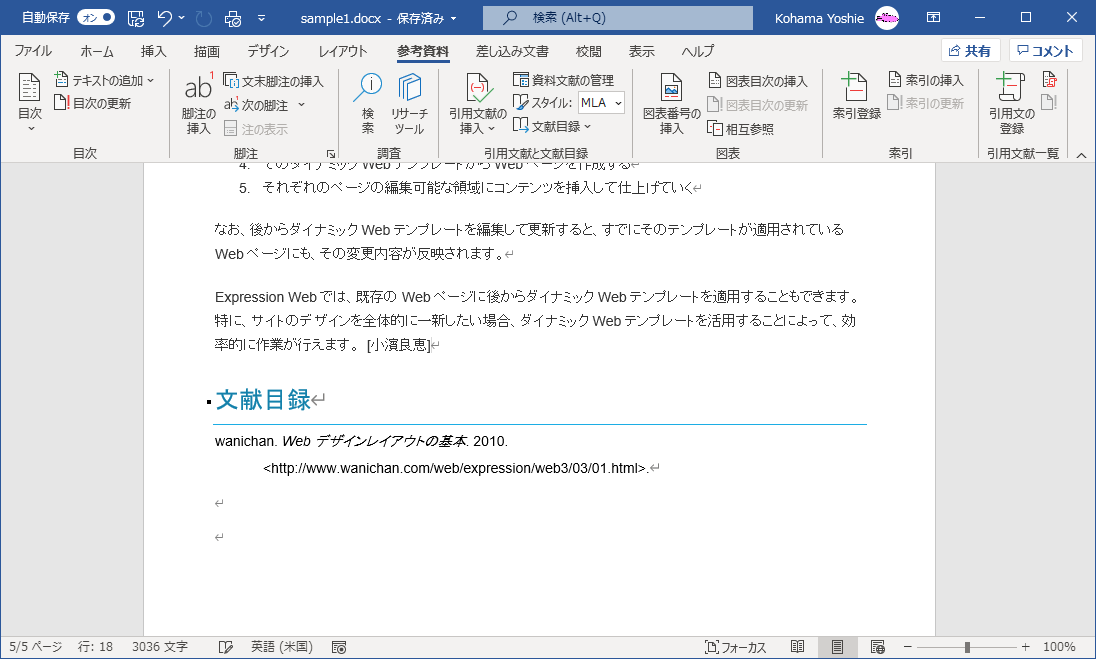 文書の最後にカーソルを移動し、[参考資料]タブ[引用文献と文献目録]グループの[引用文献の挿入]をクリックし、[新しい資料文献の追加]を選択して、以下の資料文献を登録します。