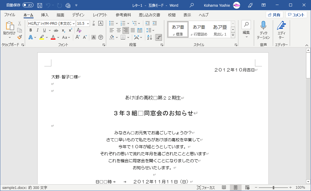- 新しい文書に差し込み結果が表示されました。