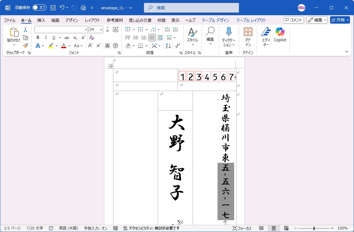 差し込みフィールドの番地を縦書きの漢数字に変換するには