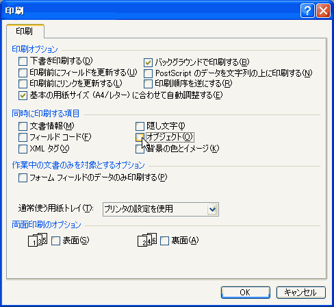 - [印刷]ダイアログボックスの「オブジェクト」のチェックボックスを外します。
