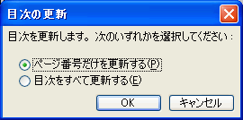 挿入された目次を更新する場合は