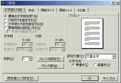 なお、Word 2000からは「原稿用紙の設定にする」という項目が追加されています。