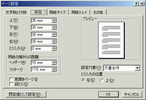 上余白、下余白、左余白、右余白などを設定してOKボタンを押してください。