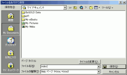 - ページタイトルを設定し、ファイル名を入力してから、[保存]ボタンをクリックします。