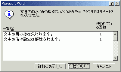 それでもOKの場合は[続行]ボタンをクリックしてください。 - 元のWord文書ファイルとは別に保存されます。