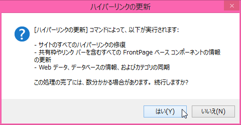 - [ツール]メニューの[ハイパーリンクの更新]をクリックします。
