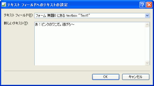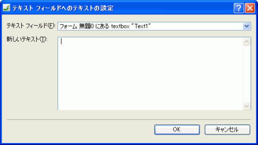 - [テキストフィールドへのテキストの設定]ダイアログボックスの[新しいテキスト]欄に、テキストを入力します。