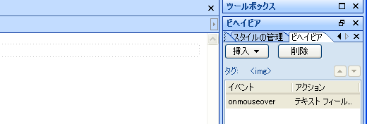 - ビヘイビアのイベントを以下の図のように「onmouseover」に設定します。