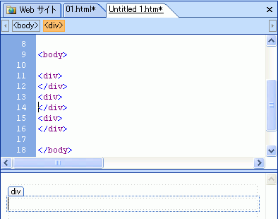 (<div>ボタン)をクリックすると、下の図のようになります。