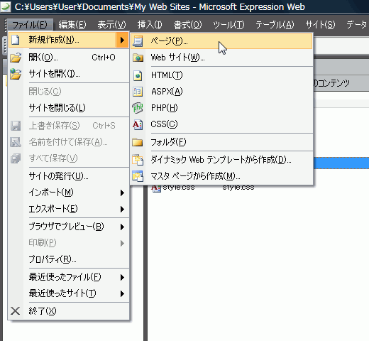- [ファイル]-[新規作成]-[ページ]を選択します。