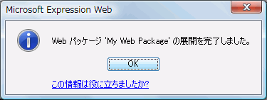 - 最後に展開が完了したというメッセージが表示されるので[OK]ボタンをクリックします。