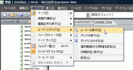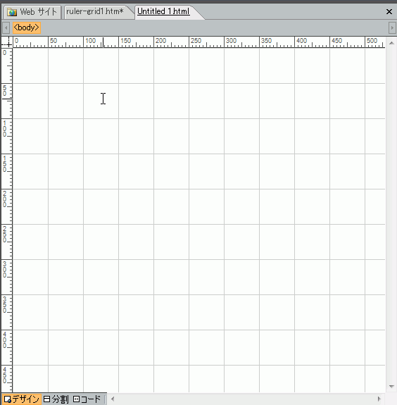Expression Webのデザインビューでの編集において、ルーラーやグリッドを表示して、編集中のページレイアウトを操作することができます。