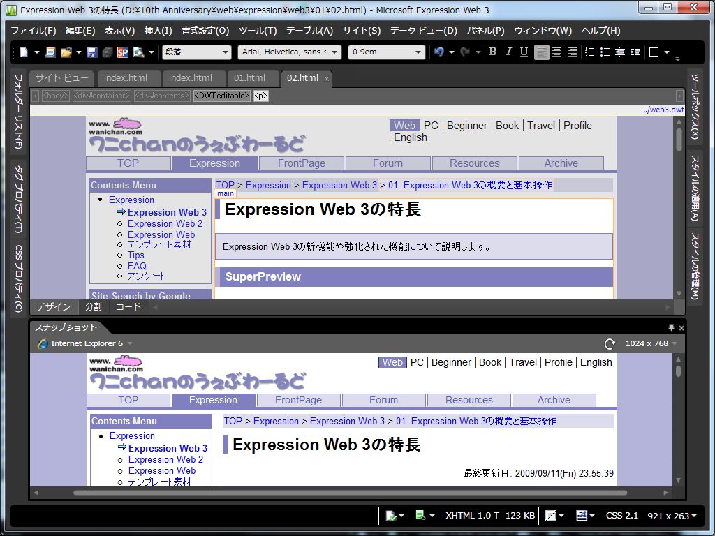 Expression Web 3 では、SuperPreviewのほかにスナップショットプレビュー機能があります。