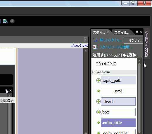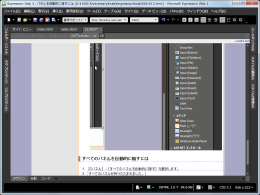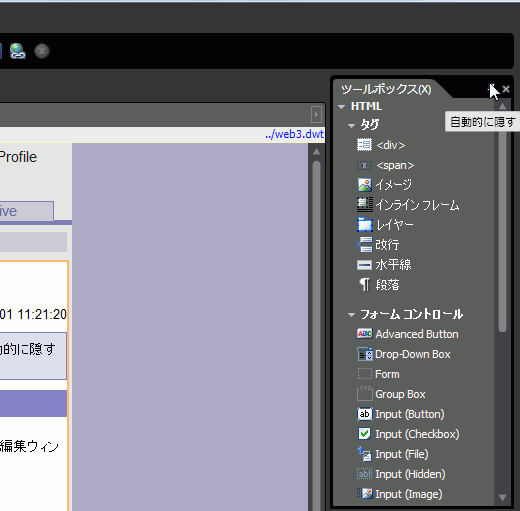 そんなとき、Expression Web 3からは、パネルを自動的に隠すことができます。