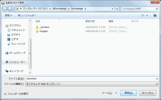 - [ファイルの種類]を「ダイナミックWebテンプレート」に指定します。