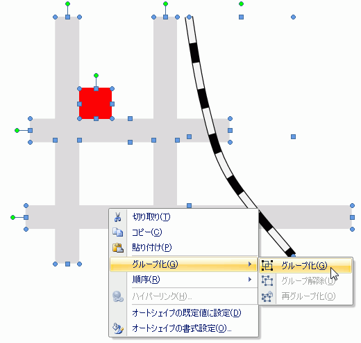 - 複数のオブジェクトをひとまとめにするには、あらかじめグループ化します。