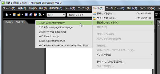 Expression Web起動時に最後に作業したサイトを開かないようにするには