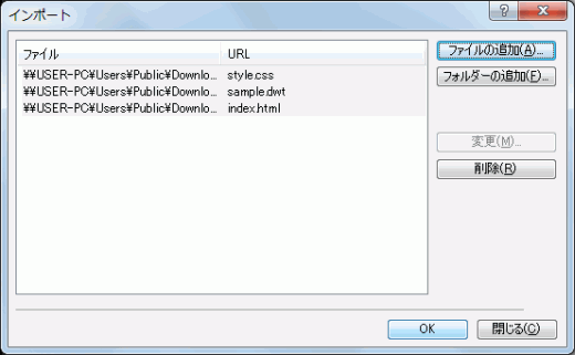 ここでは、Webサイトに必要なファイルを作業中のサイトにインポートする方法について説明します。