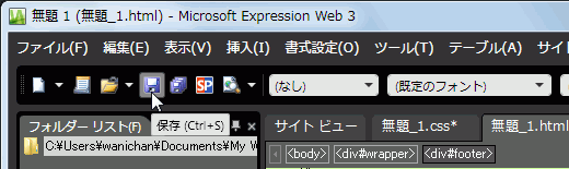 - 作業中のサイトにWebページとCSSファイルが保存されました。