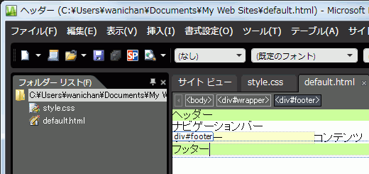 全体的なレイアウトが完成したら、作業中のサイトにCSSレイアウトを保存しましょう。Webページの名前は「default」、CSSファイル名は「style」とします。