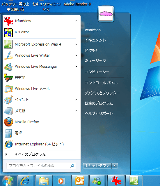 - [スタート]ボタンをクリックして、[すべてのプログラム]をクリックします。