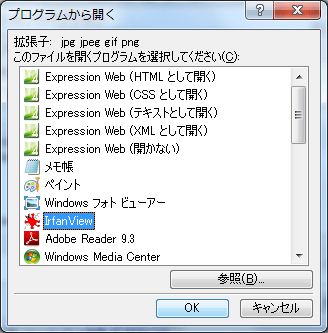 - [プログラムから開く]ダイアログボックスの[このファイルを開くプログラムを選択してください]ボックスの一覧から登録したいエディターを選択して[OK]ボタンをクリックします。