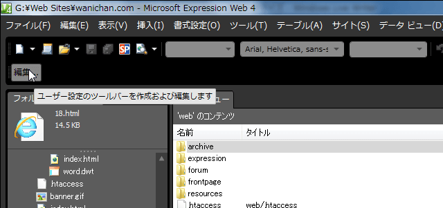 Expression Web 4 SP2からツールバーがカスタマイズできるようになりました。そこでその方法について紹介します。