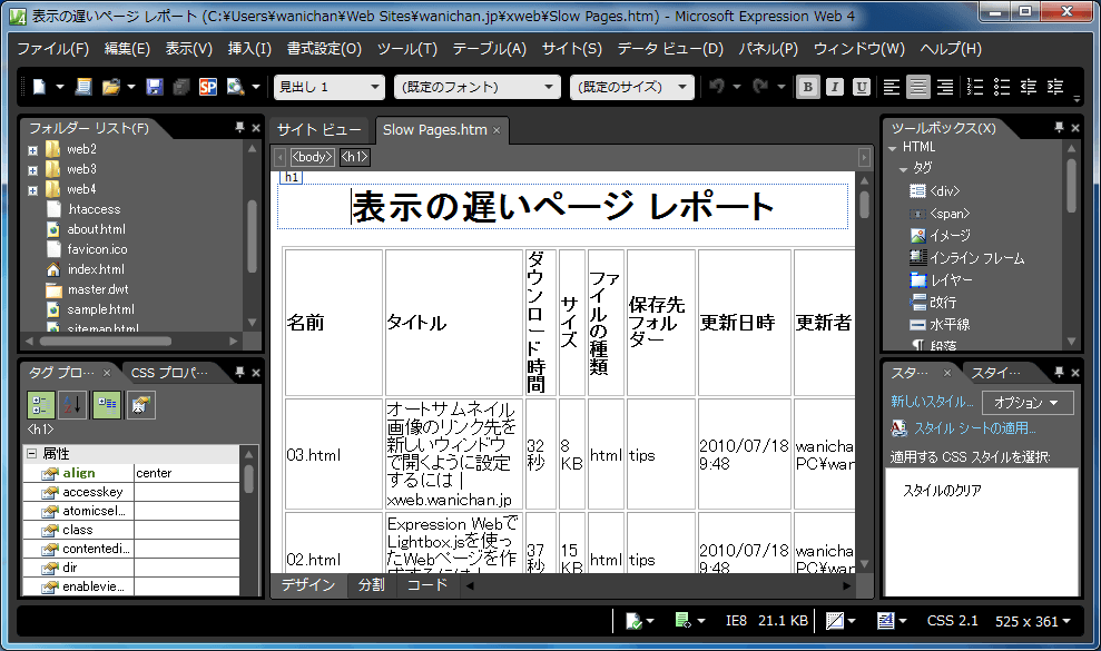 - [保存]ボタンをクリックすると、Expression Webでも開いて編集、確認ができます。