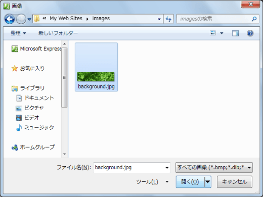 - 背景画像を選択して[開く]ボタンをクリックします。