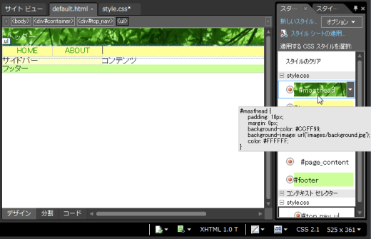 ヘッダー部分にサイトのイメージを伝えるために、そのヘッダー部分に背景画像を設定するのも一つの方法です。Expression Web & FrontPage blog および xweb.wanichan.jp は、ヘッダー部分に背景画像を設定しています。背景画像として設定することで、そのセクション内にテキストを自由に入力できます。