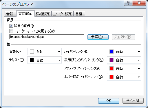- [ページのプロパティ]ダイアログボックスの[書式設定]タブを開きます。