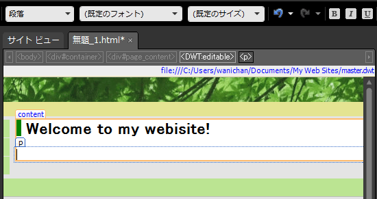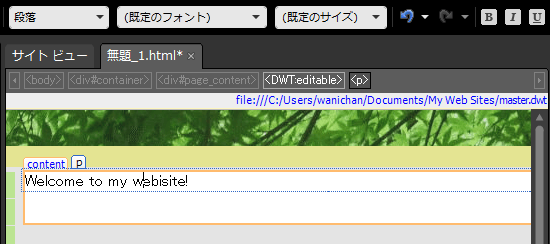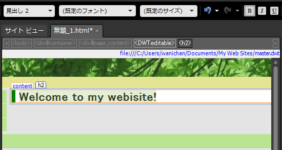 Webページには必ず「見出し」と「本文」が必要です。編集可能な領域内に見出しを挿入するには、その文字のスタイルが「段落」ではなく「なし」の場合、見出しにしたい文字列を選択して[共通]ツールバーの[スタイル]ボックスから見出しのスタイルを選択します。
