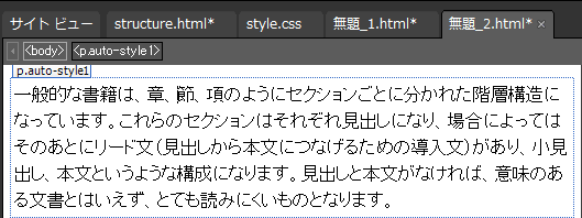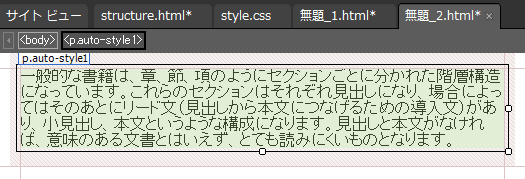 段落ごとに、インデントとスペースを調整できます。ただし、WebサイトのすべてのWebページにおいて調整する場合は、スタイルを統一するためにスタイルシートで定義します。