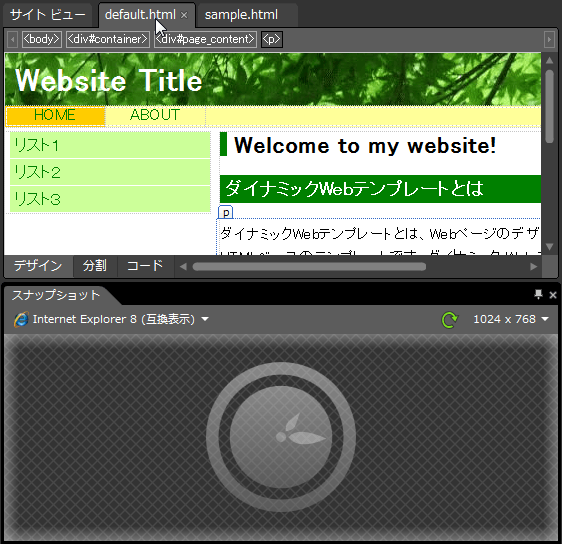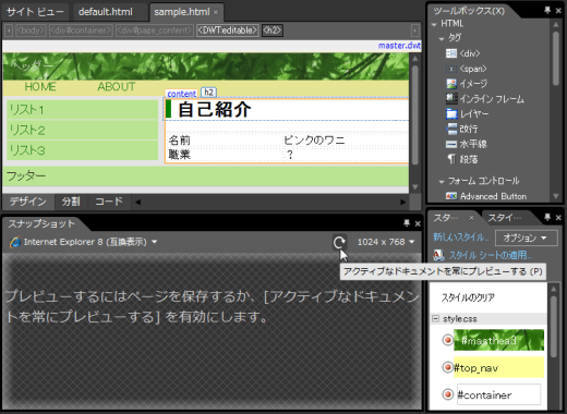 複数のWebページを編集中、ページを開いたり他のページタブを選択時にスナップショットパネル表示が更新されるように設定する方法について説明します。