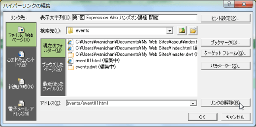 - [ハイパーリンクの編集]ダイアログボックスの[リンクの解除]ボタンをクリックします。